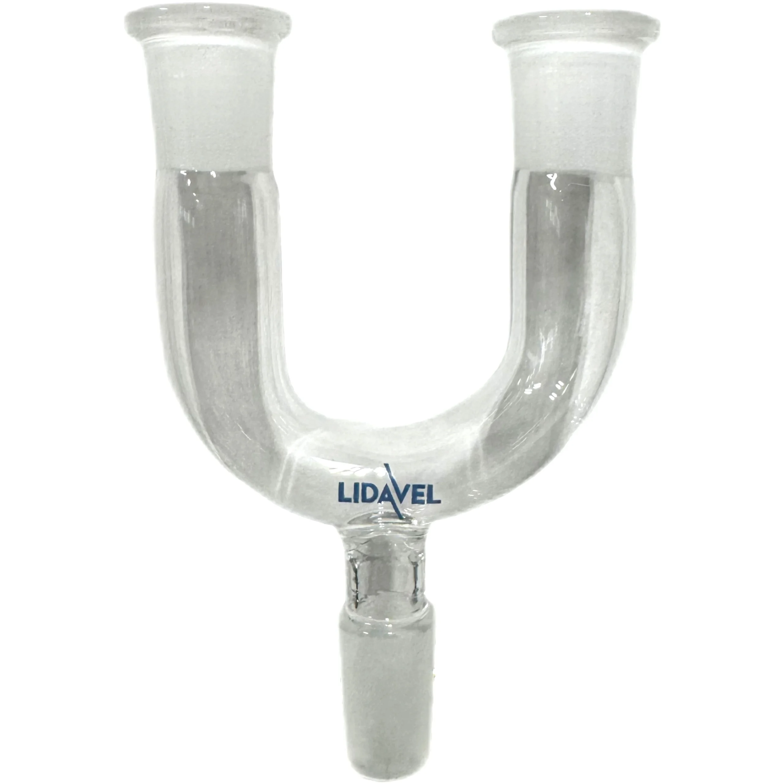 The Glass Double Input Adapter has 2 Inputs (214mm Female Glass Tapers) and 1 Output (1 14mm Male Glass Taper)
